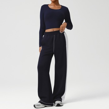 रंग-मिलान स्ट्रिप्ड स्पोर्ट्स स्वेटपैंट सेट-शरद ऋतु और सर्दियों की फिटनेस के लिए उपयुक्त